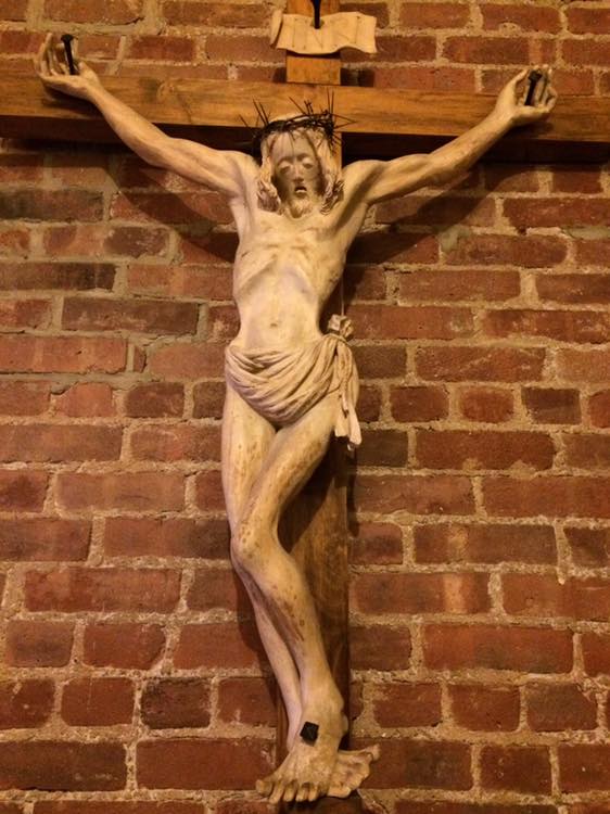 This is the cross at the entrance of the chapel of the Franciscan Friars of the Renewal in NYC